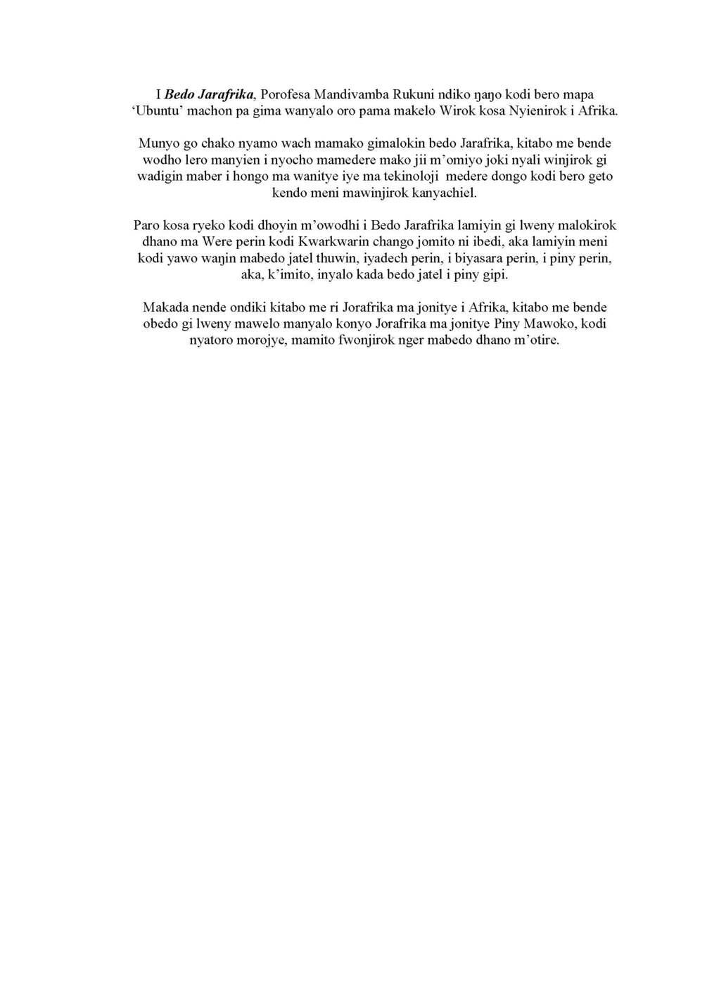 Bedo Jarafrika is also a setbook for Dhopadhola at Advanced Level in secondary schools in Uganda.